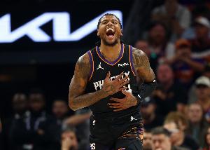 体育资讯4月18日讯 NBA附加赛,太阳前三节以78-69领先勇士。
