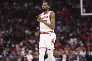 据统计,本赛季杜兰特共出战2840分钟,是自13-14赛季以来最高。而本赛季当杜兰特不在场时(约1200分钟,超2000个回合),火箭总正负值为+88。